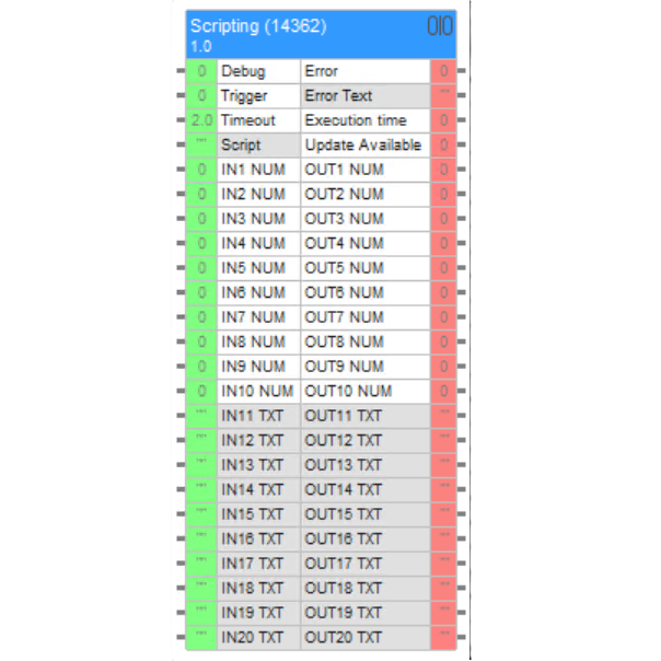 Build compact logic flows, reduce wiring complexity and create advanced automations with just a few lines of code. From smart data handling to dynamic text generation and complex conditions: everything runs inside one fast, flexible node.