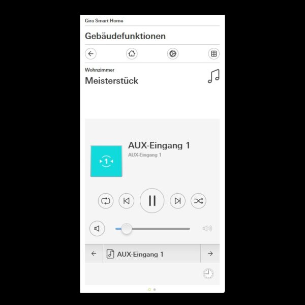 Neben der Bedienung auf dem Gira G1 2. Generation oder der Gira Smart Home App über das vom X1 zur Verfügung gestellte Visualisierungsobjekt „Audiosteuerung mit Titelbild“ ist es auch möglich die Bedienung durch einen KNX-Tastsensor zu realisieren. Ebenfalls ist es möglich die Musiksteuerung in Szenen einzubinden, so dass die sonoro Musiksysteme Bestandteil des Gebäudebussystems werden, welches durch ein KNX-System kontrolliert wird.